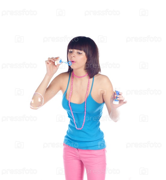 Девушка пускает мыльные пузыри