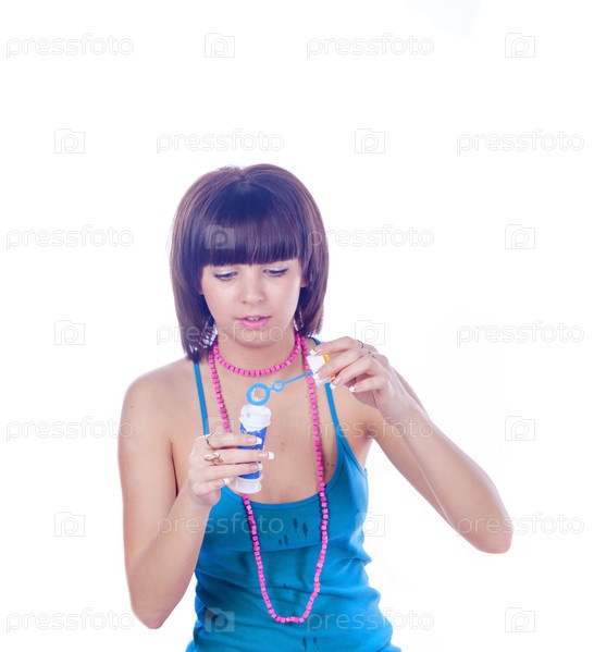 Девушка пускает мыльные пузыри