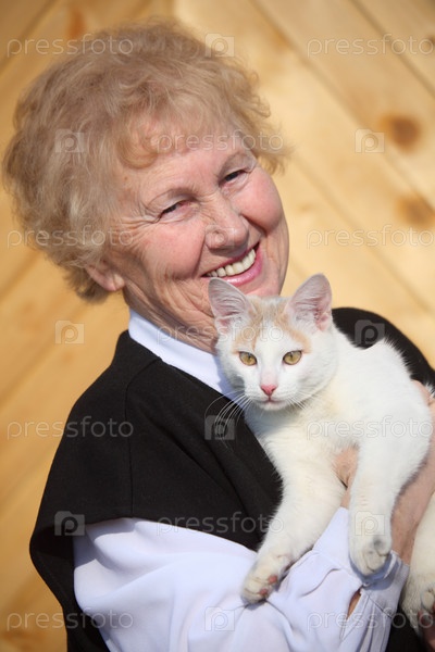 Портрет пожилой женщины с кошкой на руках