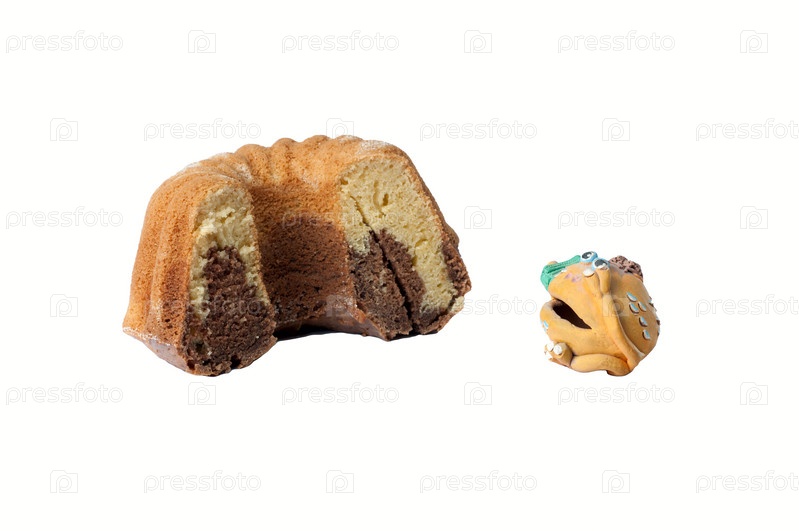 Керамическая фигурка и половина кекса