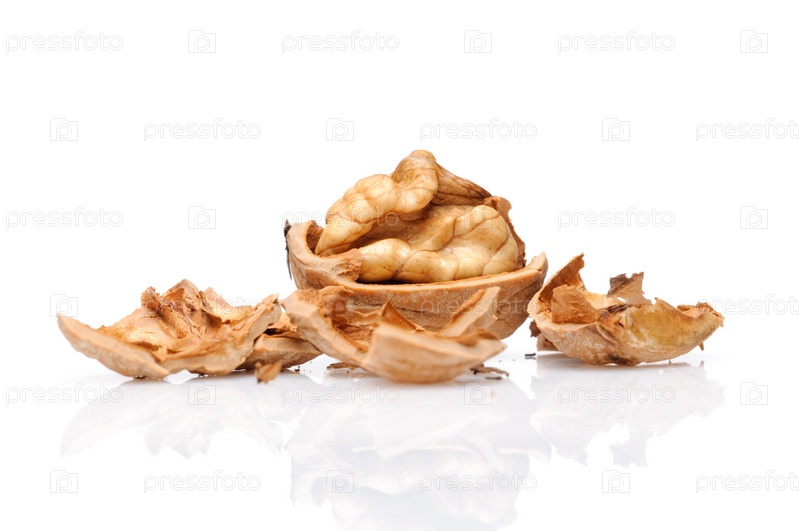 Грецкий орех на белом фоне
