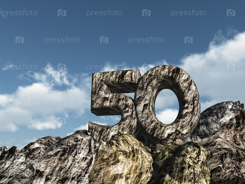 Число 50 в горах. 3D иллюстрация