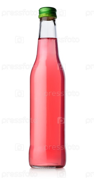 Бутылка с напитком красного цвета