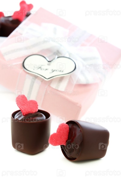 Конфеты с красными сердечками