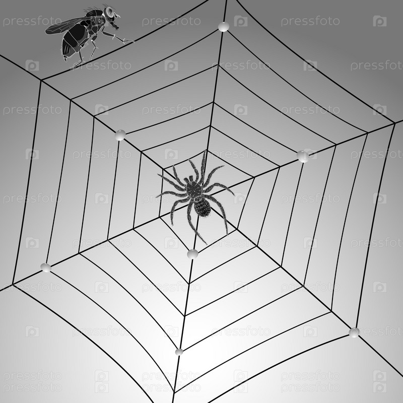 Паутина с пауком и летящая муха