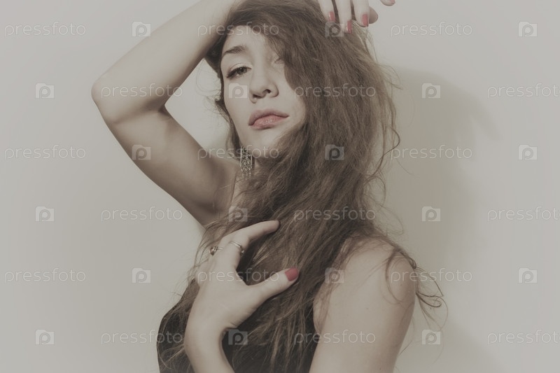 Красивая молодая женщина с длинными вьющимися волосами
