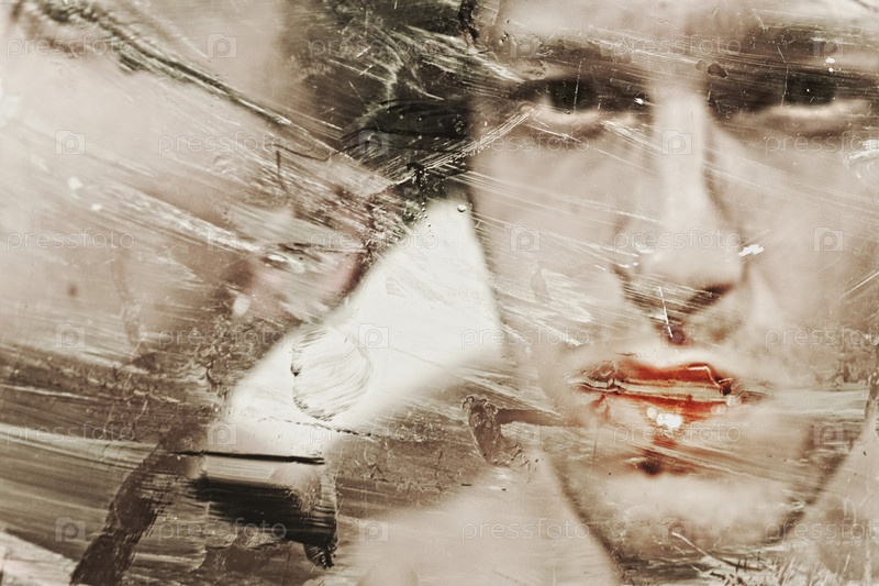 Портрет красивого мужчины за грязным стеклом