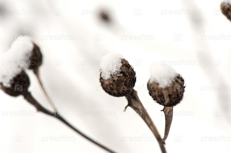 Сухое растение в снегу крупным планом