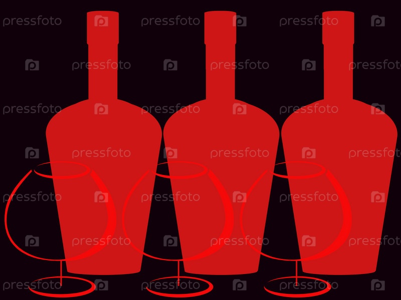 Красные бутылки с бокалами на черном фоне