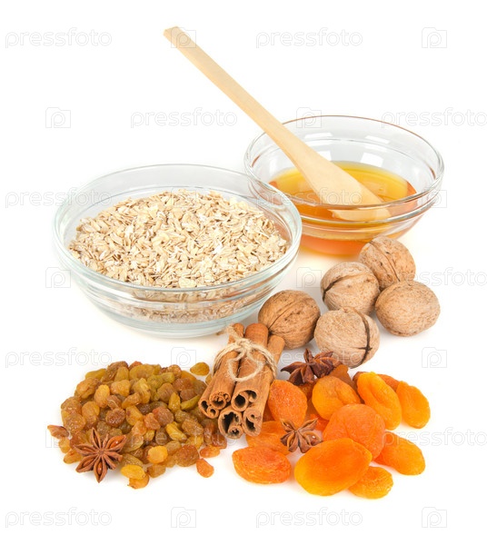 Овсяная каша, сушеные фрукты и мед