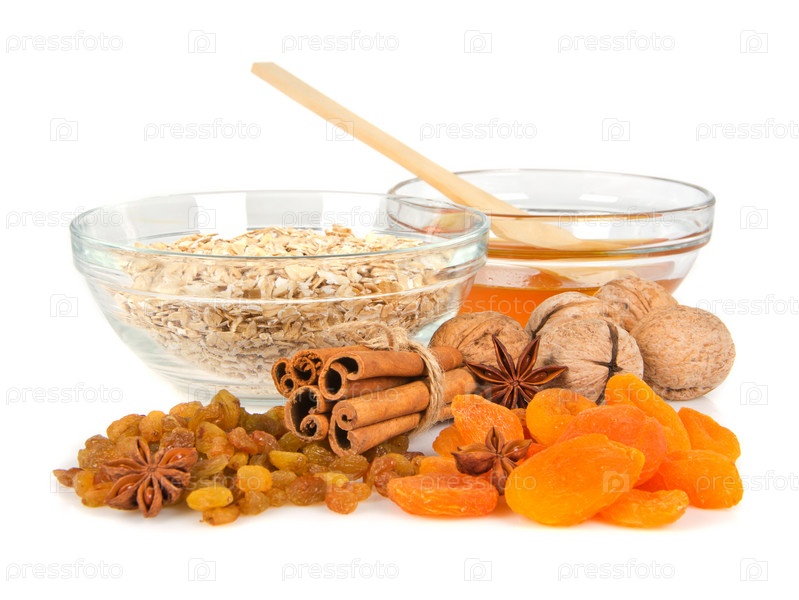 Овсяная каша, сушеные фрукты и мед