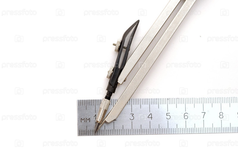 Циркуль и линейка на белом фоне