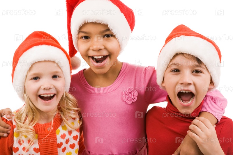 Любопытная девушка в Санта-Капе слушает несколько с коробкой подарков у уха