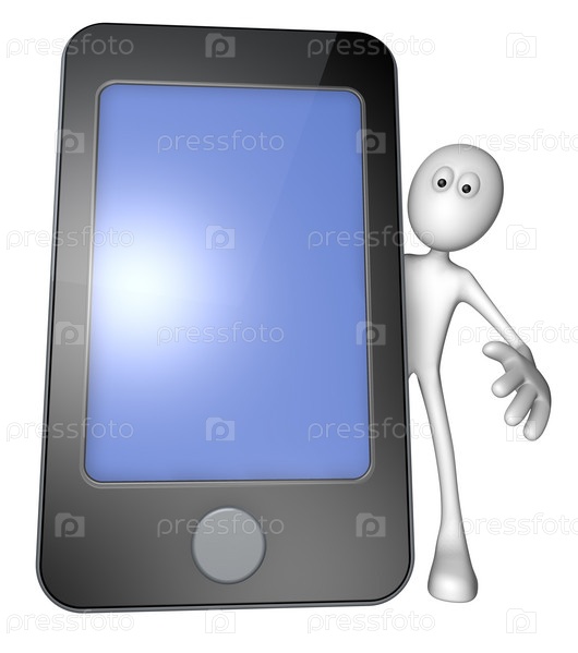 Белый парень за смартфоном - 3D иллюстрация