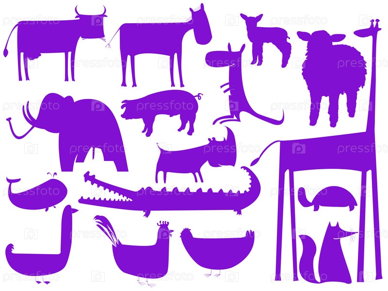 Силуэты животных и птиц