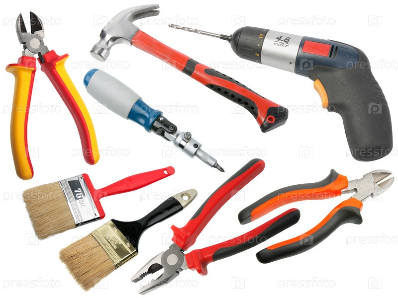 Набор ручных инструментов на белом фоне