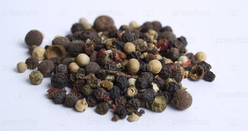 Разные виды перца на белом фоне