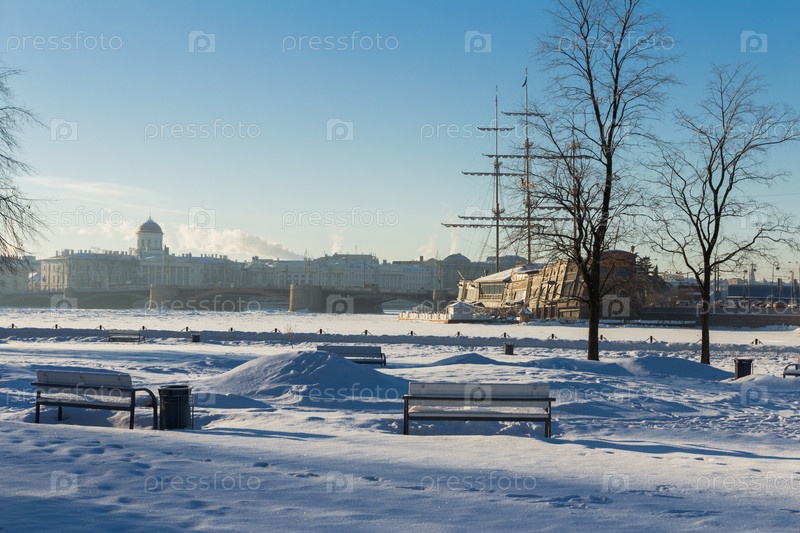 Дворцовый мост утром на Крещение