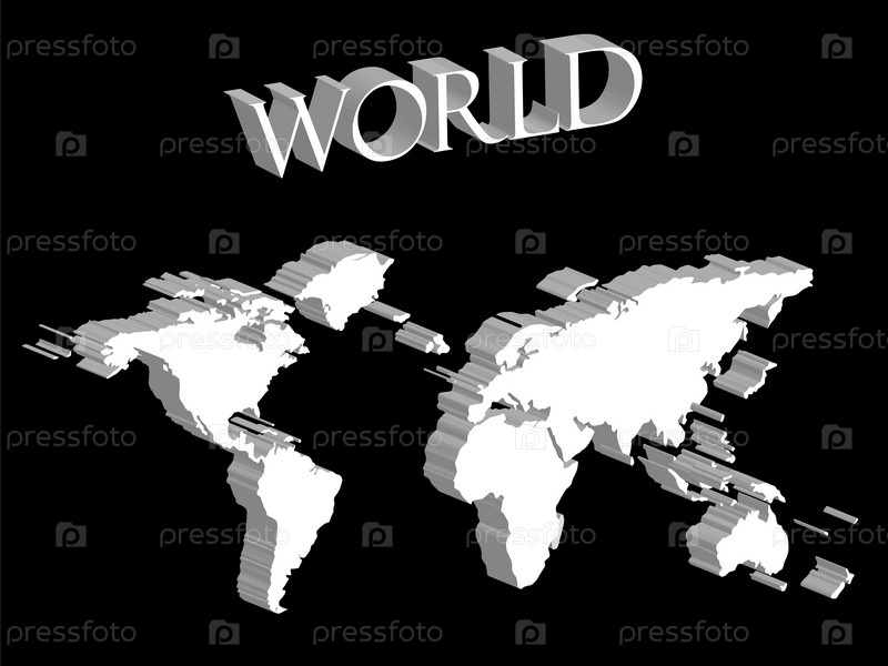 Белая карта мира на черном фоне