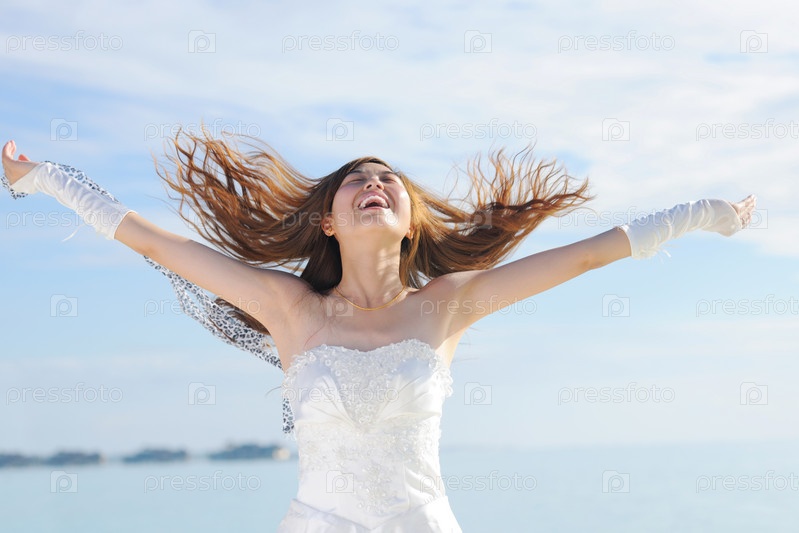 Азиатская невеста на пляже