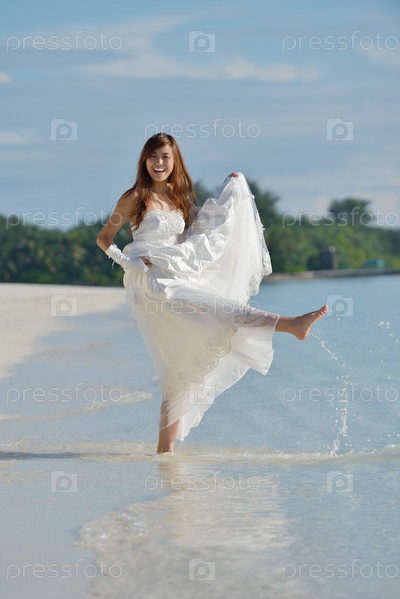 Азиатская невеста на пляже