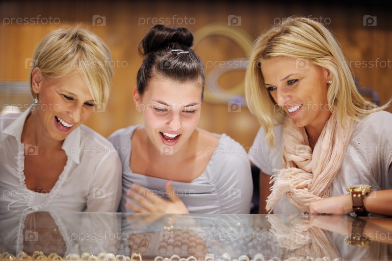 Девушки делают покупки в магазине ювелирных изделий