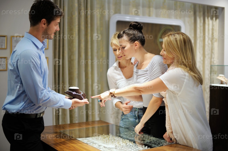 Девушки делают покупки в магазине ювелирных изделий