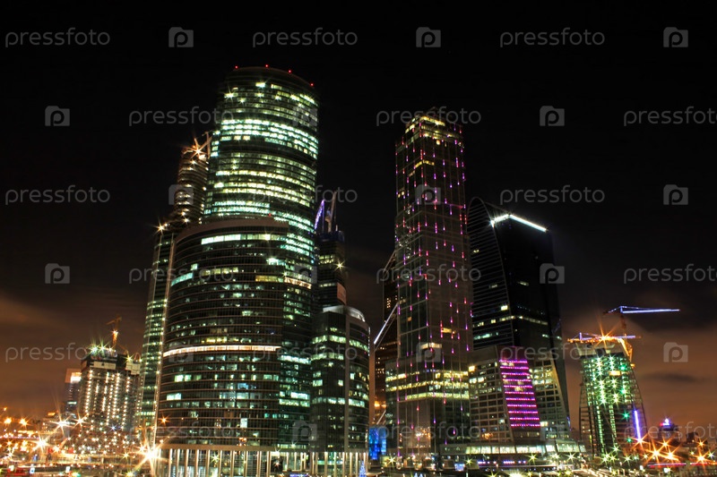 Небоскребы бизнес-центра Москва-Сити в ночной Москве