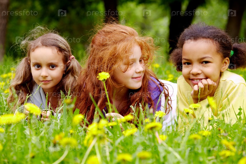 Девочки лежат в траве
