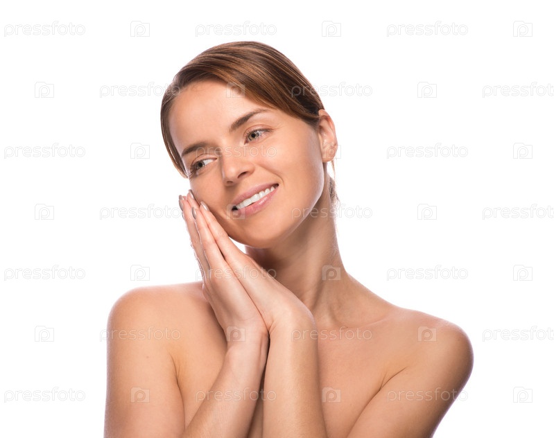 Молодая красивая женщина демонстрирует совершенную кожу