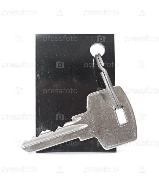 Пустой брелок и ключ, изолированные на белом фоне