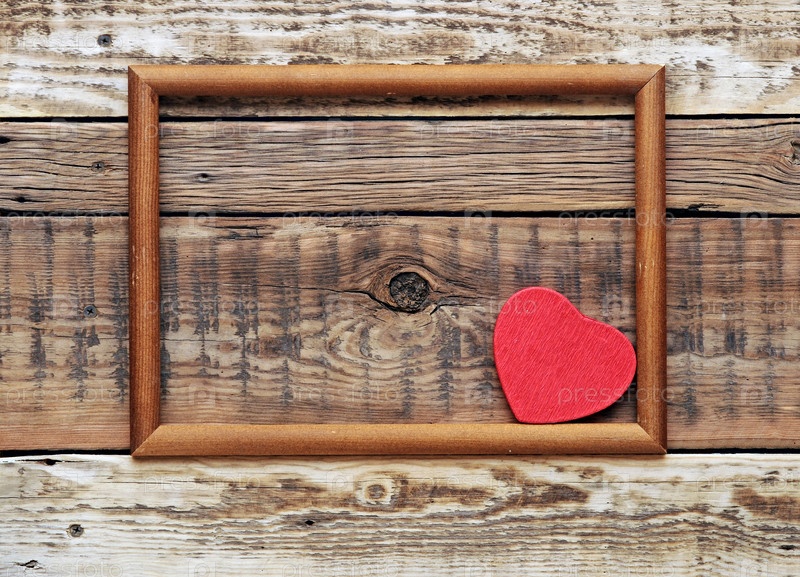 Красное сердце в старой деревянной рамке на старой грубой стене