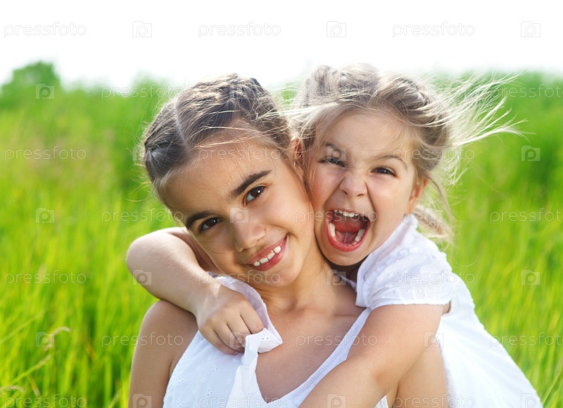 Улыбающиеся девочки на лугу
