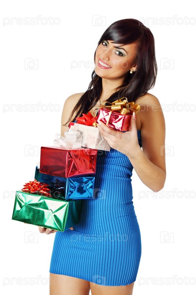 Брюнетка с подарками