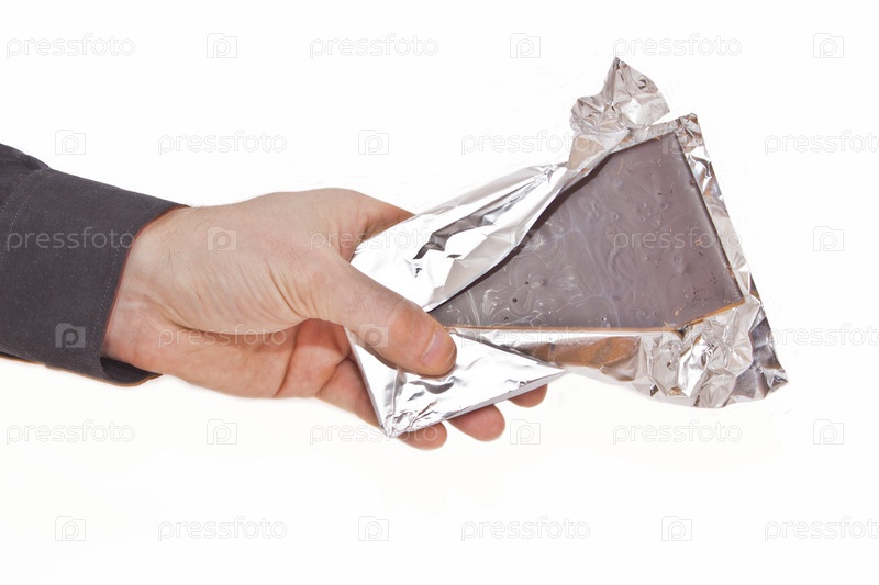 Шоколад в фольге в мужской руке