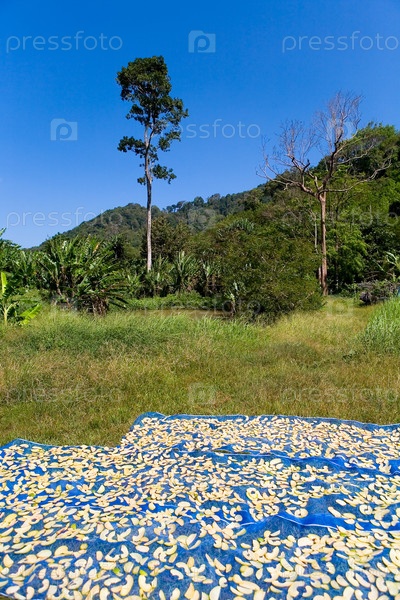 Нарезанные экзотические фрукты высыхают под солнцем