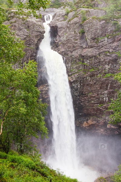 Водопад Монафоссен в Йесдале Ставангер, Норвегия