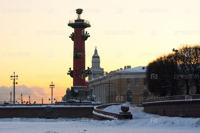 Россия. Санкт-Петербург. Зима. Ростральная колонка