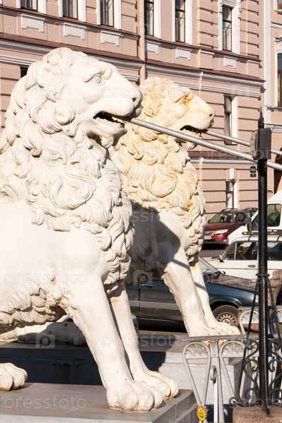 Львы на Львином мосту в Санкт-Петербурге
