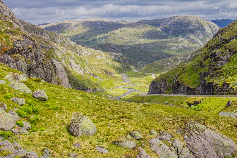 Прекрасный вид на летней дороге. Форсанд, Норвегия
