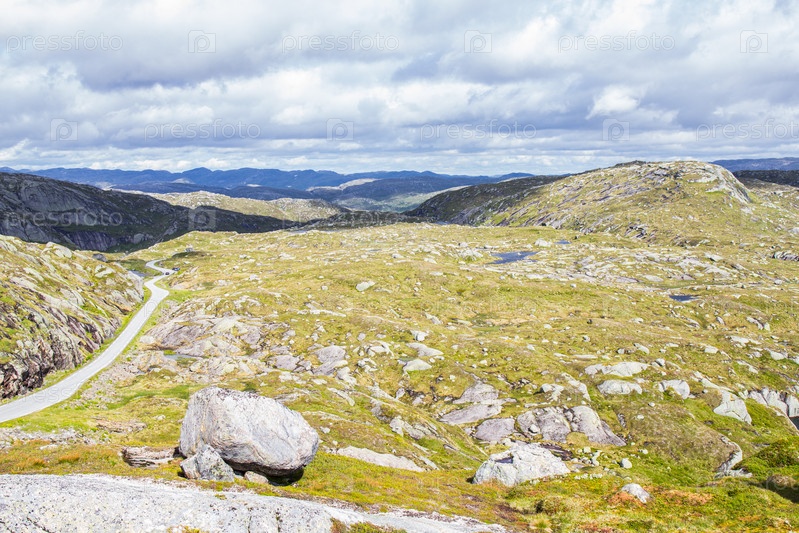 Прекрасный вид на летней дороге. Форсанд, Норвегия