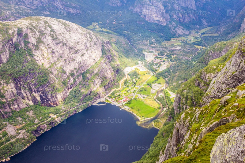 Вид с воздуха Лисефьорд и Лисеботн с горы Кьераг, Форсанд