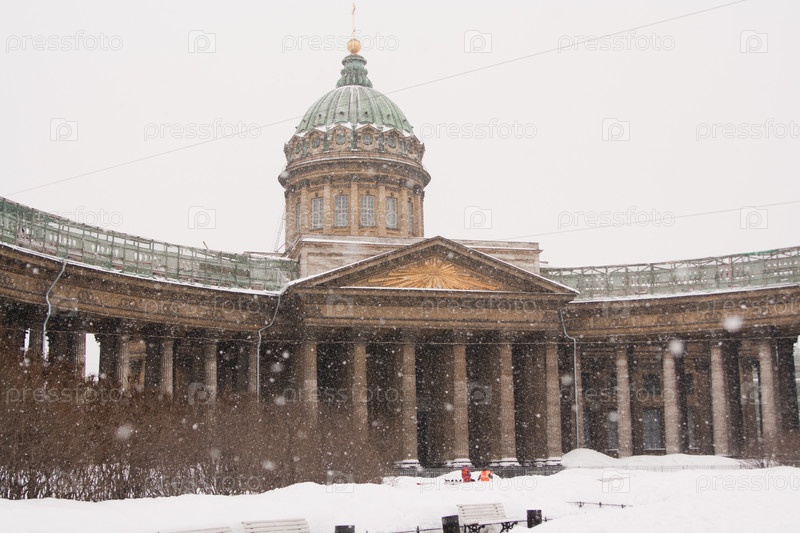 Казанский Собор в зимнем вечере. Россия, Санкт-Петербург