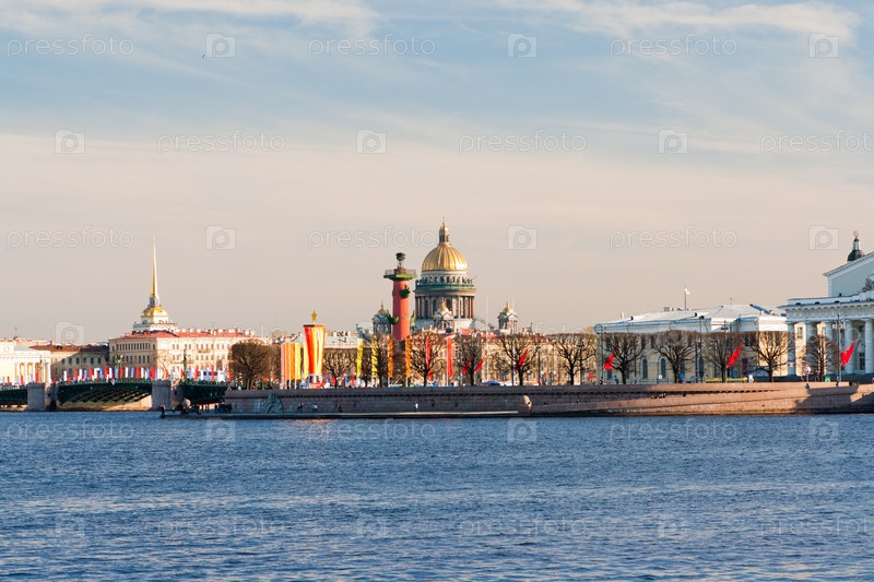 Стрелка Васильевского острова и река Нева, Санкт-Петербург, Россия