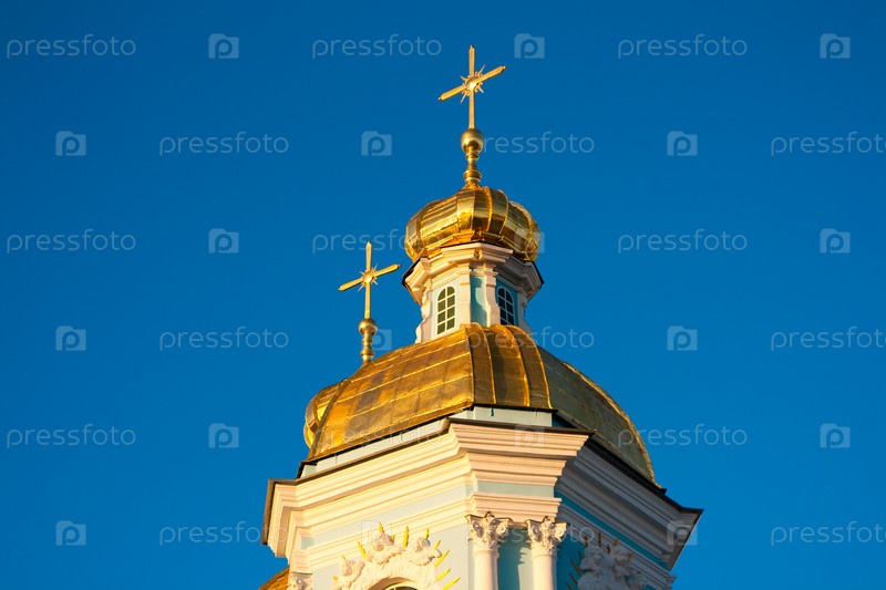 Вид Никольского собора на фоне голубого неба. Россия Санкт-Петербург