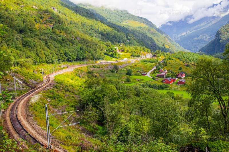 Вид железнодорожной станции Мюдраль в Норвегии
