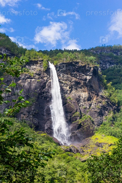 Водопад Рьоандефоссен по железнодорожной линии Мюдраль в Норвегии