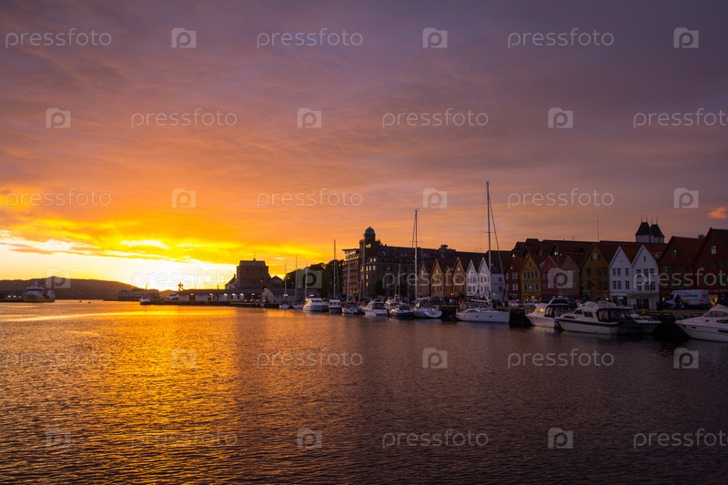 Живописные белые в гавани Бергена, Норвегия