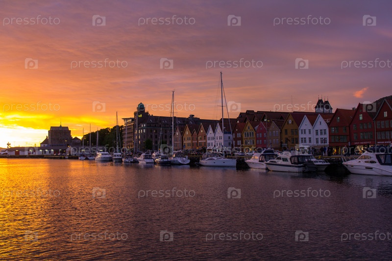 Живописные белые в гавани Бергена, Норвегия