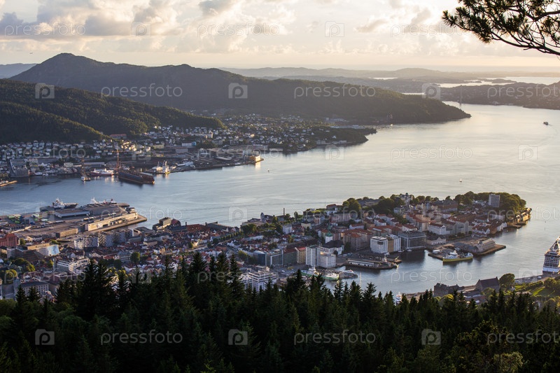 Белая ночь в Бергене, Норвегия на закате